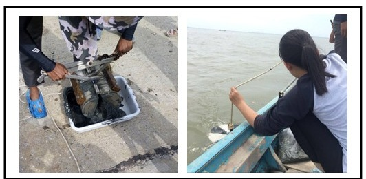 Taburan dan komposisi microplastik di permukaan air dan sedimen di ekosistem marin merupakan salah satu daripada sepuluh isu utama yang muncul di Malaysia. Malahan Malaysia turut tersenarai di antara sepuluh negara yang teruk tercemar di peringkat global [3]. Disebabkan sifat mikroplastik yang pelbagai yang terdiri daripada pelbagai komposisi kimia, ketumpatan, bentuk dan ukuran, zarah-zarahnya akan membawa kepada taburan yang berbeza[4]. Berdasarkan analisis terhadap longgokan mikroplastik di beberapa kawasan persekitaran seperti permukaan air dan sedimen, kandungan mikroplastik yang ditemui adalah berbeza [5, 6]. Plastik juga telah terbukti dimakan oleh pelbagai jenis spesies laut, yang kemudiannya boleh berakhir dalam rantaian makanan manusia yang turut berbahaya pada kesihatan manusia [7].nOleh sebab itu, satu kajian telah dijalankan bagi menentukan kehadiran mikroplastik di persekitaran (air dan sedimen) yang mana ia akhirnya berpotensi untuk terkumpul dalam rantaian makanan. Rajah 1 menunjukkan proses persampelan bagi air dan sedimen.